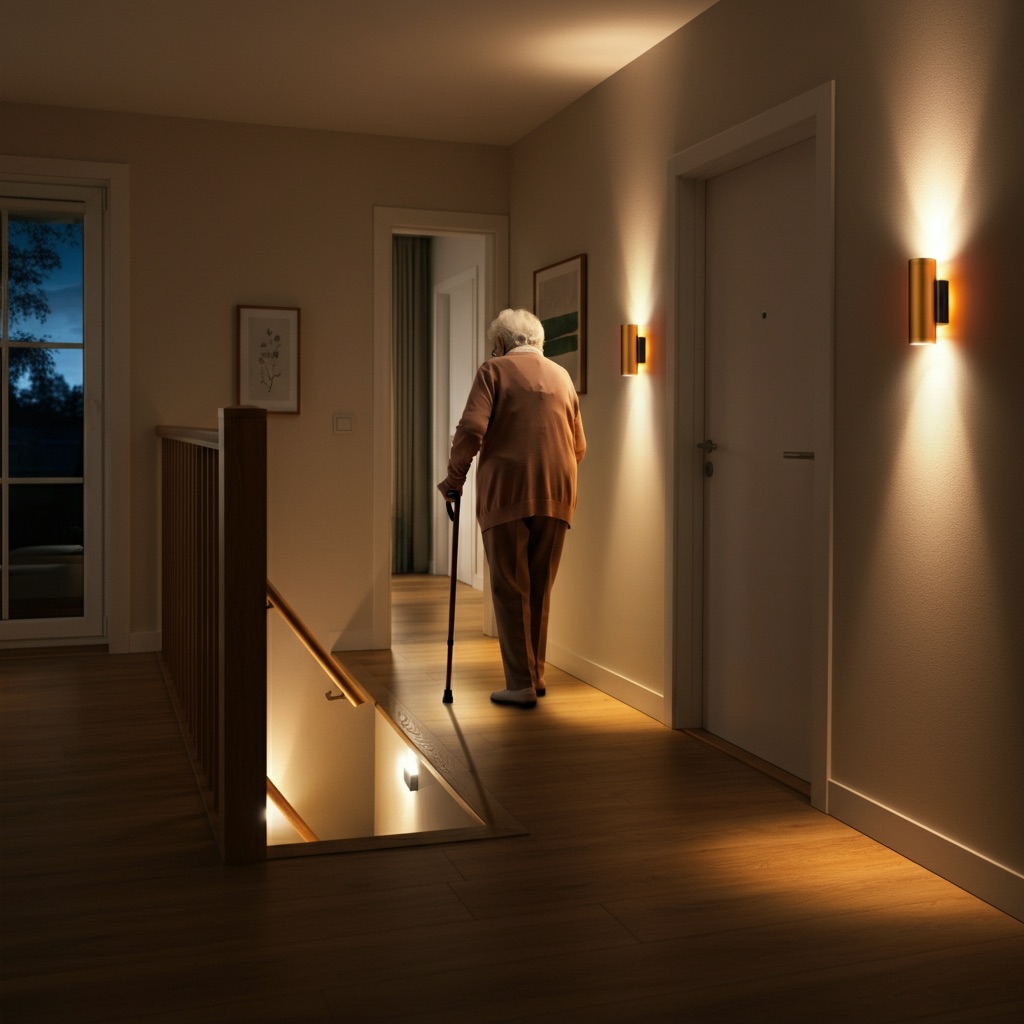 - Verlichting met bewegingssensors: ’s Nachts automatisch licht zodra u uit bed stapt, zodat struikelen minder kans krijgt.